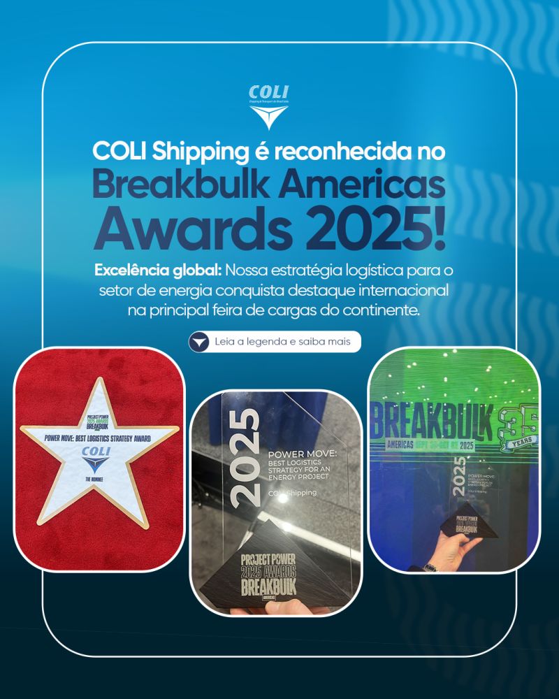 Congratulations to our colleagues from COLI Shipping & Transport do Brasil! At Breakbulk Americas 2025, COLI was presented the Award for ‘Best Logistics Strategy for an Energy Project’